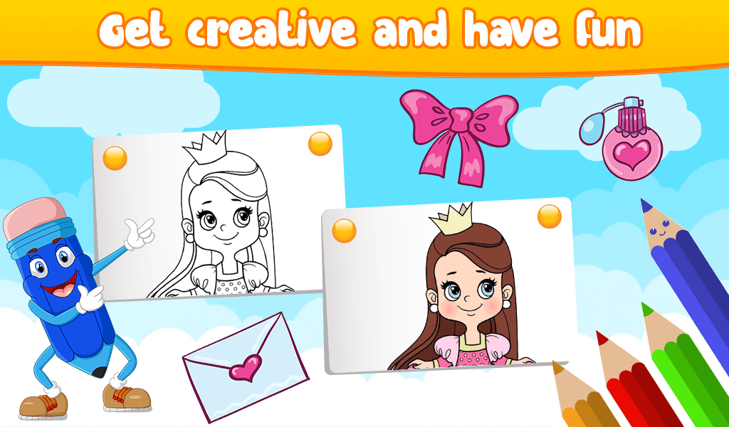 Welcome to our magical princess land through this coloring book for girls. This day is your happy day, you can install this free beautiful coloring game and start to have fun.