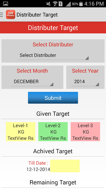 GMPackers is the business solution application for the sales management of the sales representatives of the firm. Application allows the sales representatives to manage stock , taking order , Distributor management , Return orders etc.