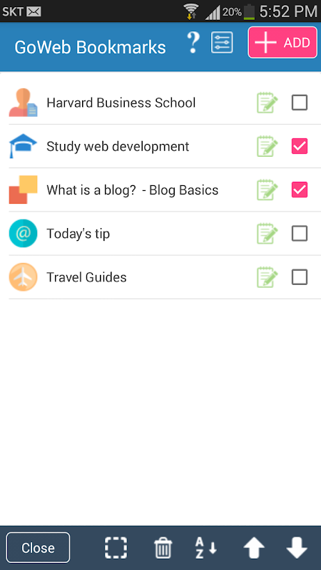 Go Web bookmarks widget 1.0.6