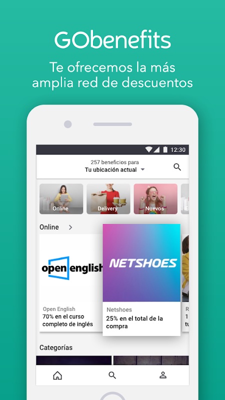 De toepassing GOBefits toont u de voordelen die het dichtst bij uw huidige locatie liggen, of het gebied dat u kiest. Download het en blader door de exclusieve applicatie, waar u ook bent.