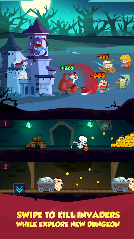 The battle is simple but addictive. You can swipe to kill monsters, and challenge level bosses. As the game progresses, you will gradually build a solid fortress.