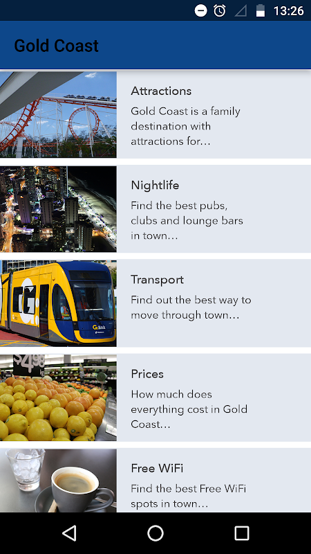 This Quick Guide is ideal for backpackers and holidaymakers that like to make the most our of their stay in Gold Coast. Looking for a good restaurant or club? Wondering how much groceries and transport cost? Looking for free WiFi or the perfect beach? This app is for you.
