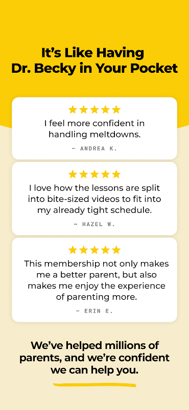 Voelt u zich overweldigd door de driftbuien van uw kind? Probeert u de pre-puberteit en tienerjaren door te komen? Onze 5-minuten-presentaties zijn afgestemd op de leeftijd van uw kind en de doelen van uw gezin. Met gepersonaliseerde scripts en strategieën heeft u slechts een paar minuten nodig om u een sterke, zelfverzekerde leider voor uw gezin te voelen.