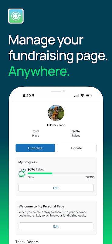 • Deel uw fondsenwervingspagina om supporters en donaties te werven met behulp van uw favoriete communicatiemiddelen op uw telefoon (d.w.z. sms, iMessage, e-mail, socialemediaplatforms)