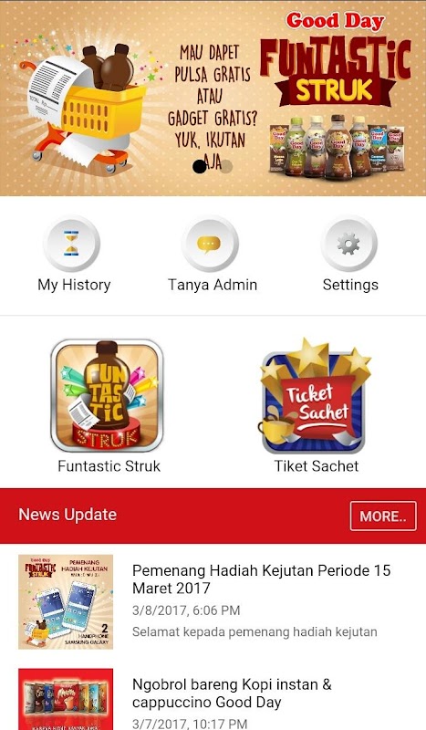 Download aplikasi GOOD POINT lalu beli produk Good Day Gaul sebanyak-banyaknya untuk mendapatkan point dan ticket lebih banyak & tunggu hadiah kejutan Good Day lainnya!