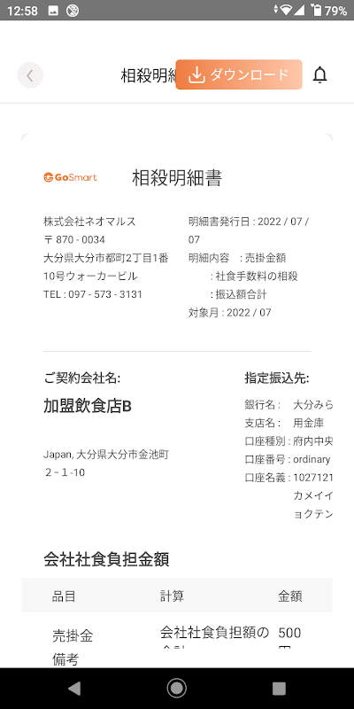 本アプリは、GoSmartアプリを利用する従業員ユーザーの社員食堂として加盟する店舗用の会計管理アプリです。
