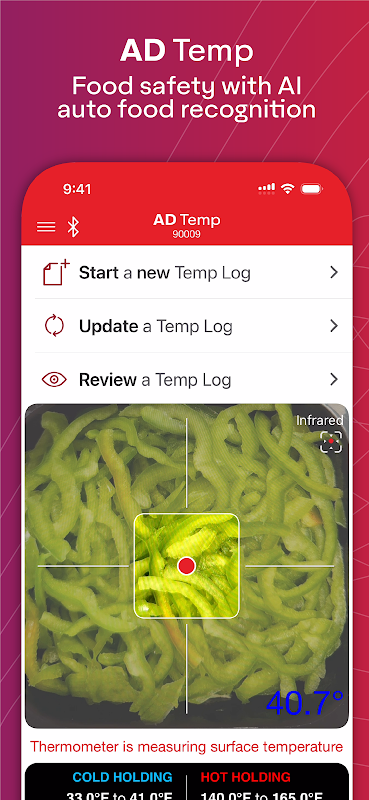 AD Temp is de veiligste manier om voedseltemperaturen te meten en andere voedselveiligheidstaken te automatiseren. De app elimineert onnauwkeurigheden en vereenvoudigt het HACCP-proces door de temperatuur vast te leggen, deze digitaal vast te leggen en workflows te activeren wanneer corrigerende maatregelen nodig zijn. Indien ingeschakeld kan de app ook automatisch voedselproducten herkennen met behulp van AI om de voedselveiligheid verder te automatiseren.