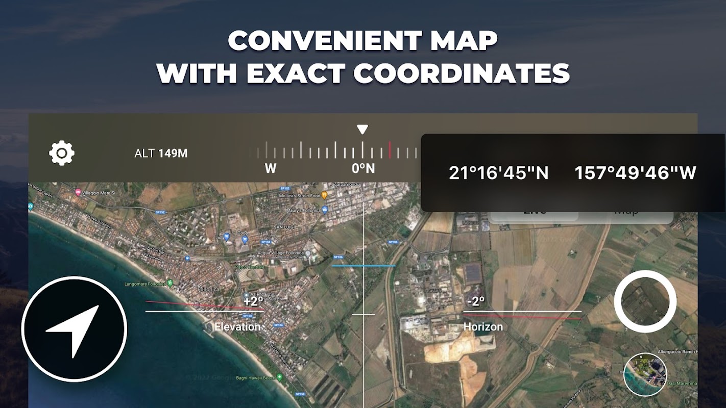 Our GPS map camera shows your live location via geotags and geographical features of a specific place. Mobile topographer — your assistant on any trip!