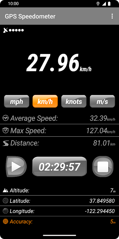 Deze digitale GPS-snelheidsmeter-app wordt ten zeerste aanbevolen als u meestal te voet, hardlopen, fietsen, autorijden, in een vliegtuig, op een cruiseschip reist, op een circuitdag racet of te hard rijdt in open water met uw speedboot. Met deze offline GPS-snelheidsmeter-app kunt u eenvoudig uw locatie vinden op basis van GPS-coördinaten in realtime zonder enige toegang tot internet. Deze eenvoudige GPS-snelheidsmeter-app is goed geoptimaliseerd om de beste prestaties te leveren met nog minder middelen en is ontworpen met een moderne, fris ogende, eenvoudige gebruikersinterface. Het is snel, gebruikt minder apparaatgeheugen en heeft geen invloed op de levensduur van de batterij en de prestaties van uw apparaat.