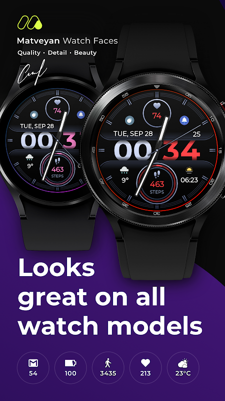 Gradient Analog Informer-wijzerplaat, digitale en analoge tijd, modern sportontwerp en gezondheidsgegevens.