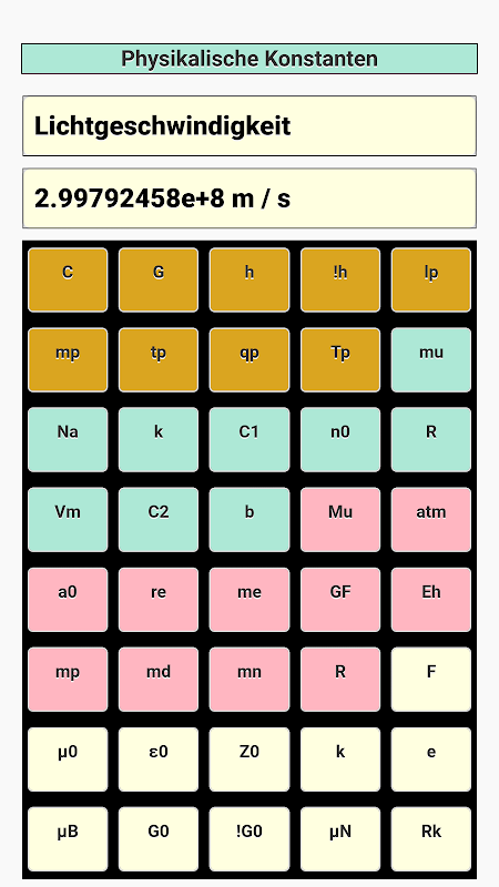De volgende fysieke constanten zijn beschikbaar: