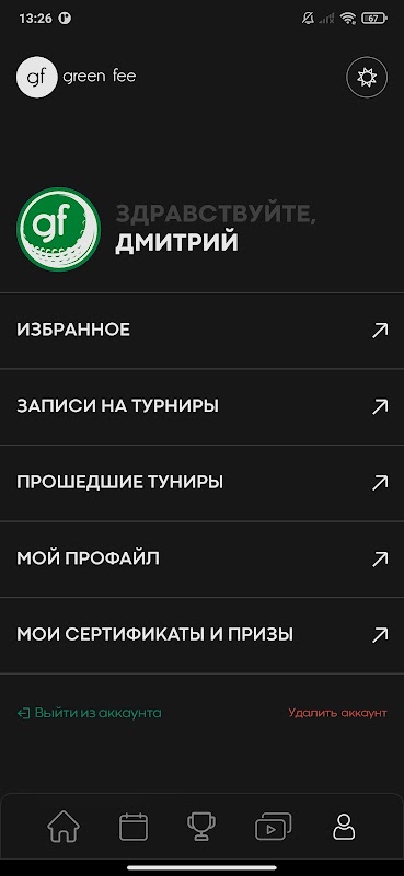 Met de GreenFee-applicatie heeft u niet alleen altijd het actuele schema van amateurgolftoernooien, maar ook de resultaten ervan binnen handbereik. Nu kunt u zich met één klik op de knop inschrijven voor het toernooi en in uw persoonlijke account uw eigen toernooikalender voor het seizoen aanmaken.