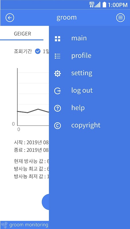 그룸(groom)은 방사능 측정 디바이스 전용 어플리케이션이며,