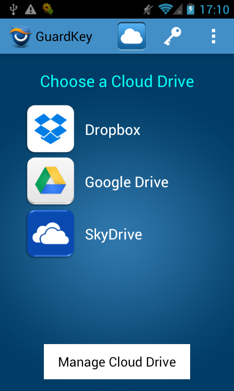 When you're on the go, GuardKey Viewer lets you access your secure cloud drive from your smartphone. With cloud drive apps installed, you can sync files from your smartphone, or even with other mobile devices. Support Dropbox、Google Drive for auto detection without setting, and you can customize other cloud drives.