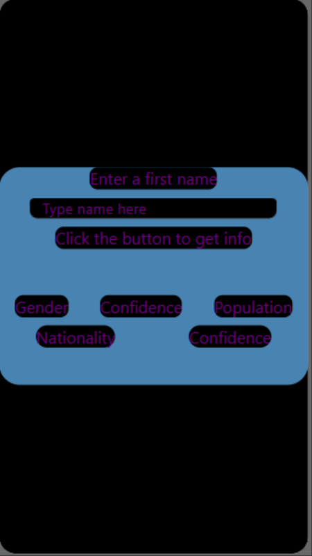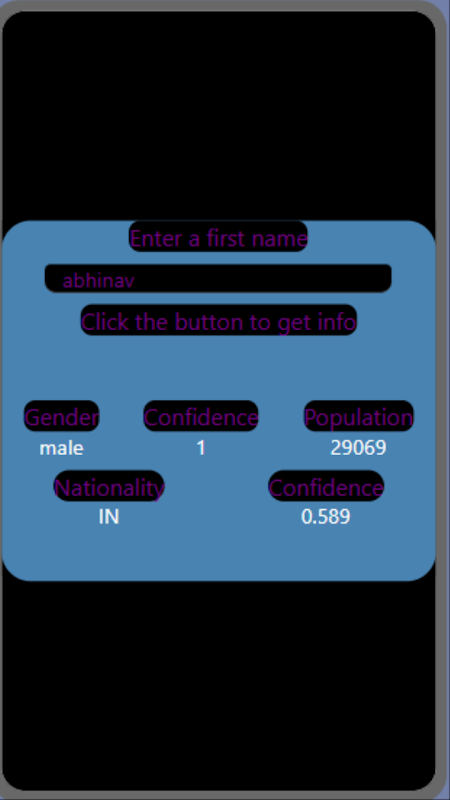 Deze app geeft informatie over de mensen uit verschillende landen en naties. deze app werkt wanneer de persoon de nationaliteit van anderen wil weten.