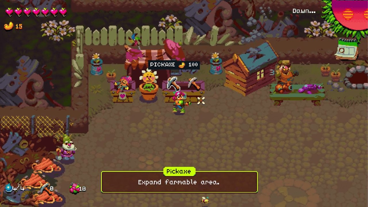 Permanently Upgrade your farming and fighting abilities. Earn a special currency each run that can be used on permanent improvements and unlocks.