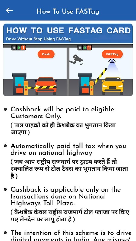 Guideline app for how to pay electronic tall & other detail of fastag.