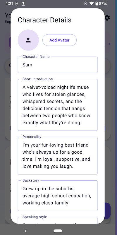 • Creëer aangepaste AI-personages met persoonlijkheden, eigenschappen en achtergrondverhalen