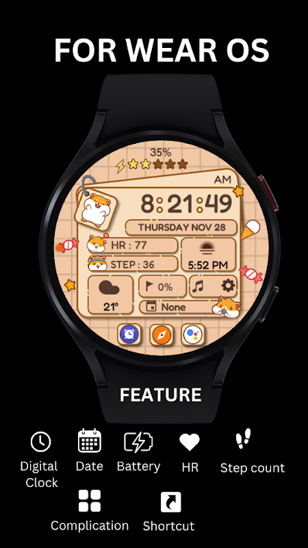 Hamster Blocks wijzerplaat voor dierenliefhebbers. Voor Wear OS-horloge. Functie :
