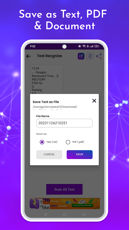 Deze Image to Text Converter-app 2024 maakt gebruik van de allernieuwste Optical Character Recognition (OCR)-technologie om handgeschreven tekst nauwkeurig te identificeren en om te zetten in bewerkbare digitale inhoud.