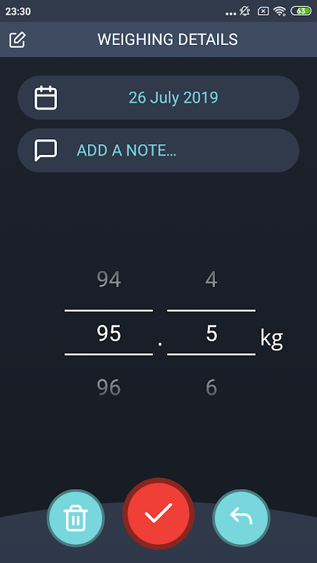 • Geef uw lichaamsgewicht gemakkelijk om het gewicht dagboek met een handige numberpicker