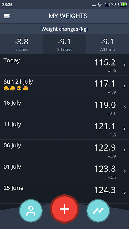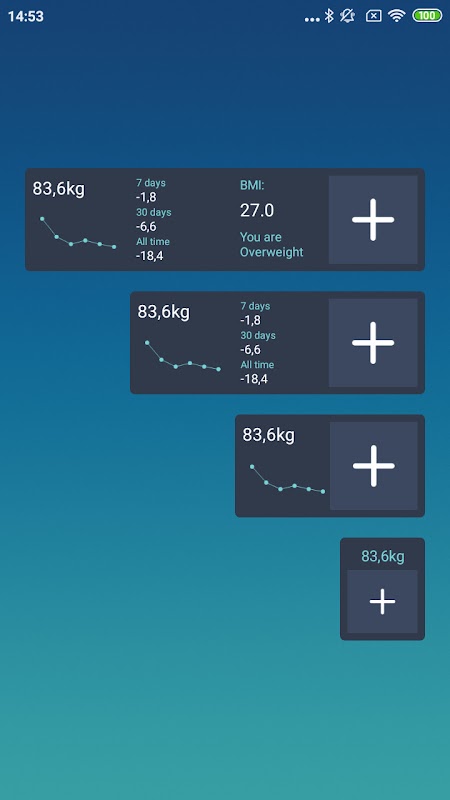 Net stap op de schaal elke dag, zet je lichaamsgewicht in de app en let op uw gewicht naar beneden en je BMI op weg naar een gezonde waarde.