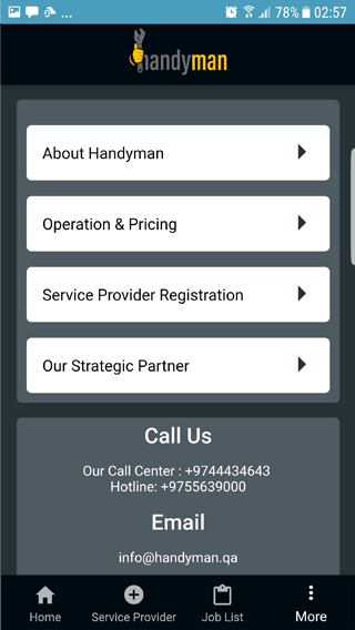 Once downloaded to mobile your worry of looking for a handyman to attend to your job is taken over by Handyman App which functions as a Call Center facilitating communication with our service providers effectively and saving your time.