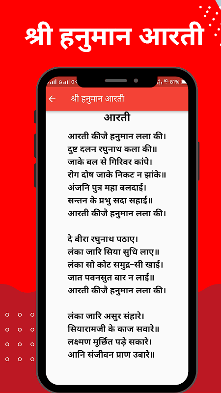 Jai Shree Hanuman-app bevat de volgende teksten -