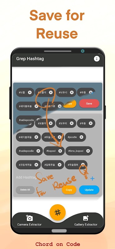 #4. 추출한 해시태그를 관리할 수도 있어요. 매번 적지 마시고 간단하게 카피만 해서 쓰세요. :)