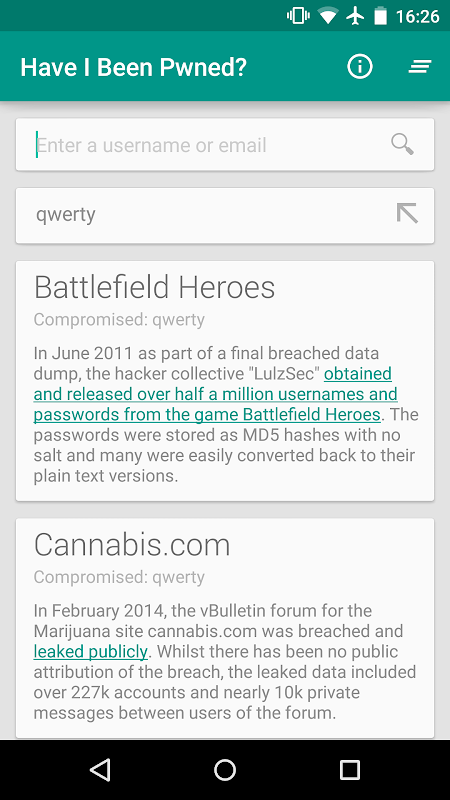 Use this app to check if any of your accounts were part of some of the large breaches in recent years.