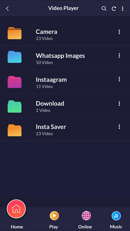 Full HD video player supports all formats of video with high speed and clear graphics & best option are "folder" and "all video" which is on front page. You can controll volume and brightness from the and foward video with swipe. Child lock option and video crop,fit to screen also available the best thing in this player is you can zoom video as much as you can.