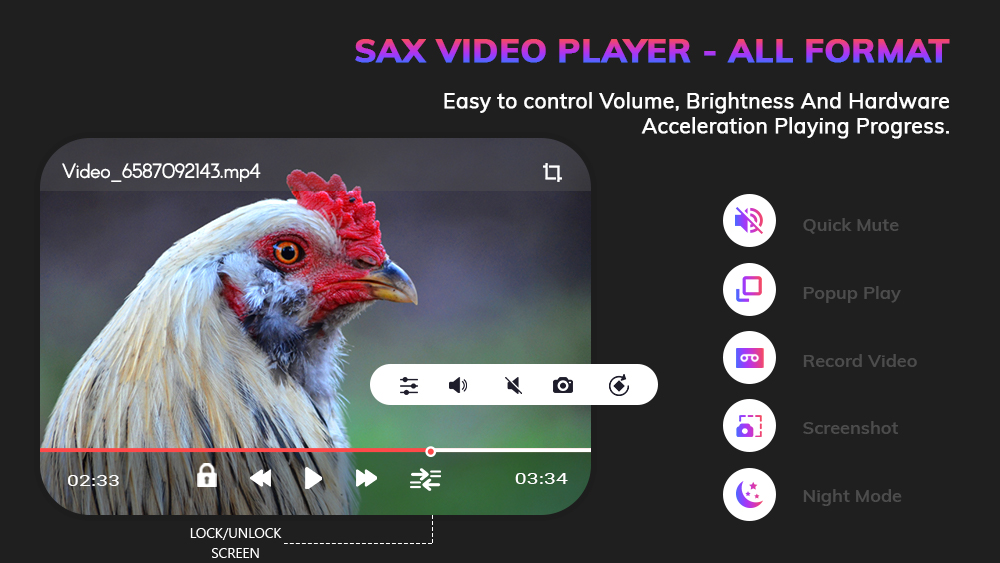 A New All in One Video Player plays HD, full HD & 4k videos with a very smoothly quality, which make you, could enjoy smoother and better quality videos. Full hardware acceleration supports for faster and smoother video playback. In the Video Player, you could also easy to control volume, brightness and playing progress by swiping on playback screen.