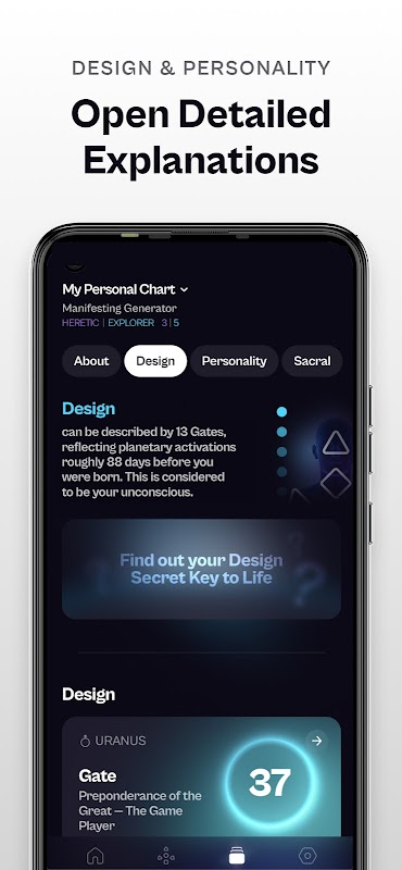 Ontgrendel de kosmische geheimen van Human Design met HD Human Design. Download de app nu en begin aan een transformerende reis van zelfontdekking en persoonlijke groei.