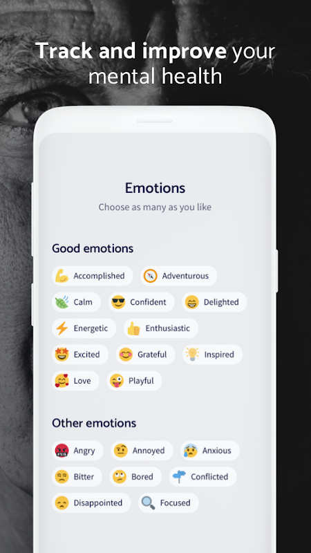 Je ontvangt van ons meldingen om stemmingscheck-ins te doen - we willen weten hoe je je voelt. Houd je alsjeblieft niet in. Geërgerd door je buurman? Verliefd? Zin in nacho's? Vertel ons alles! We combineren uw stemmingsgegevens met uw apparaatgegevens om u te laten zien hoe uw lichamelijke en geestelijke gezondheid met elkaar samenhangen.