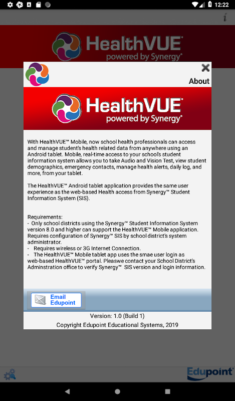 Met HealthVUE ™ Mobile kunnen gezondheidswerkers op school nu overal met Android-tablets de gezondheidsgerelateerde gegevens van leerlingen bekijken en beheren. Met mobiele, realtime toegang tot het studentinformatiesysteem van uw school kunt u een audio- of zichttest doen, demografische gegevens van studenten bekijken, contacten voor noodgevallen, gezondheidswaarschuwingen beheren en dagelijks meer loggen vanaf uw Android-tablet.