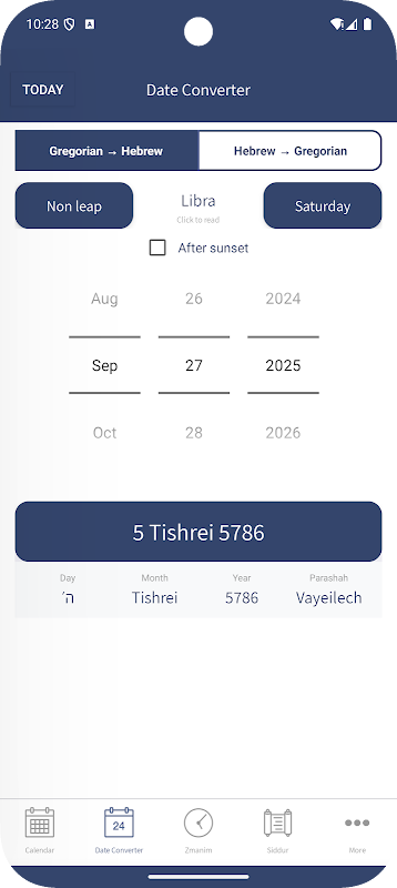 Joodse kalender, Siddur, Shabbat, Zmanim, Tehillim, datumomzetter, feestdagen