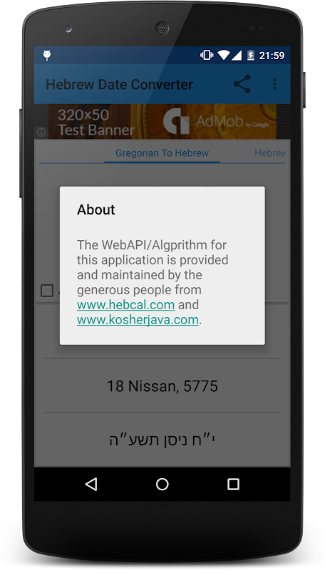 Een zeer eenvoudige app om Gregoriaanse datum om de Hebreeuwse data te vertalen.
