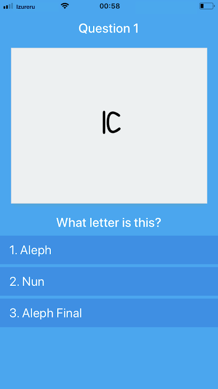 Are you learning Hebrew but finding it difficult to recognise the script characters? Well then here is the app for you. Version 1 provides a quick multiple choice test of the alephbet, to help you link the print characters to their script equivalent.