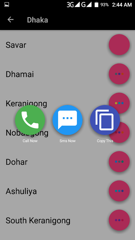 With this application you can easily take emergency police help from anywhere at anytime. There will be three buttons for every contacts Call, Sms and Copy.