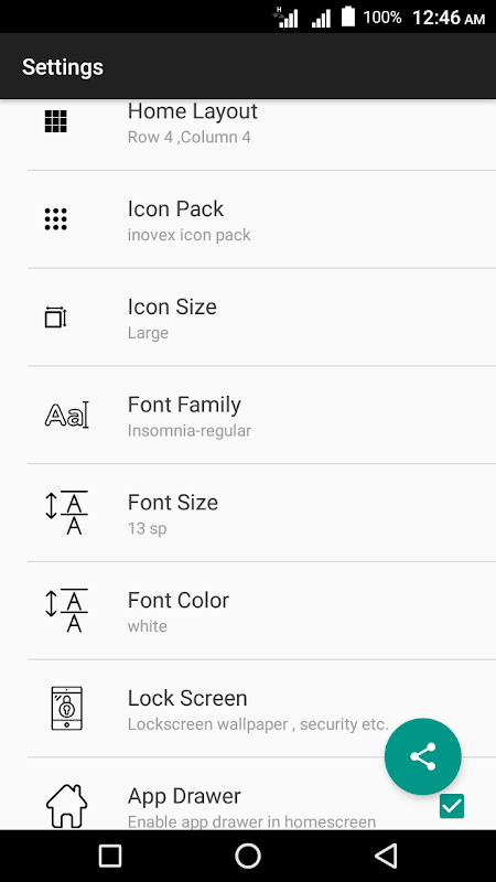 • Verberg apps uit de lade, aangepaste lettertype selectie (font-face en grootte).