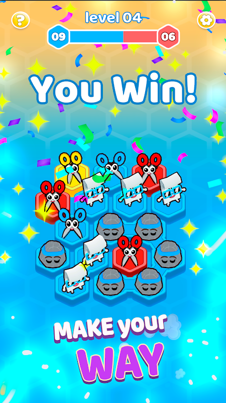 Je hebt eindelijk het leuke spel gevonden waar je naar op zoek was: Hex Conquest - Rock Paper Scissors Strategy Puzzle Game!