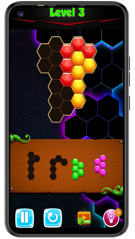 Hexagon Block Puzzle kan alleen worden gespeeld en de blokken worden zeshoekig op tafel gelegd. La regla es simple: ¡Todo tiene que calzar! usa tu intelligentie om de puzzel op te lossen.