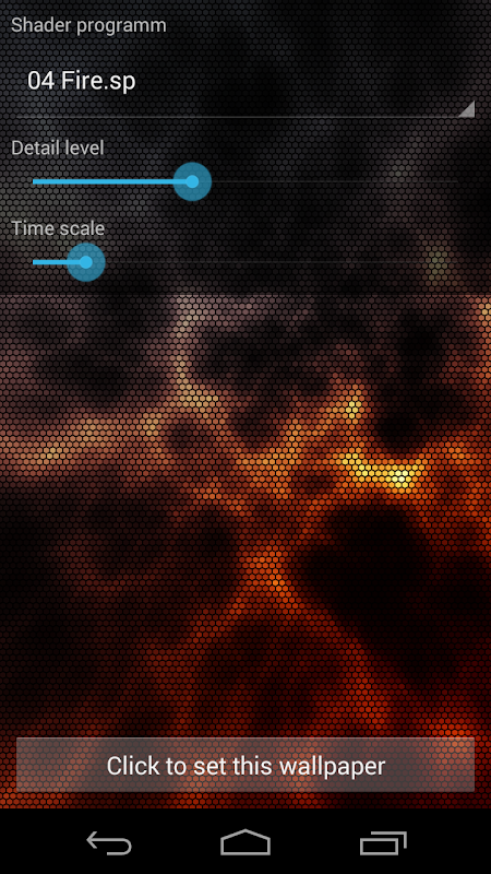 Geanimeerde live wallpaper toont zeshoekige pixels met een arceringsprogramma.