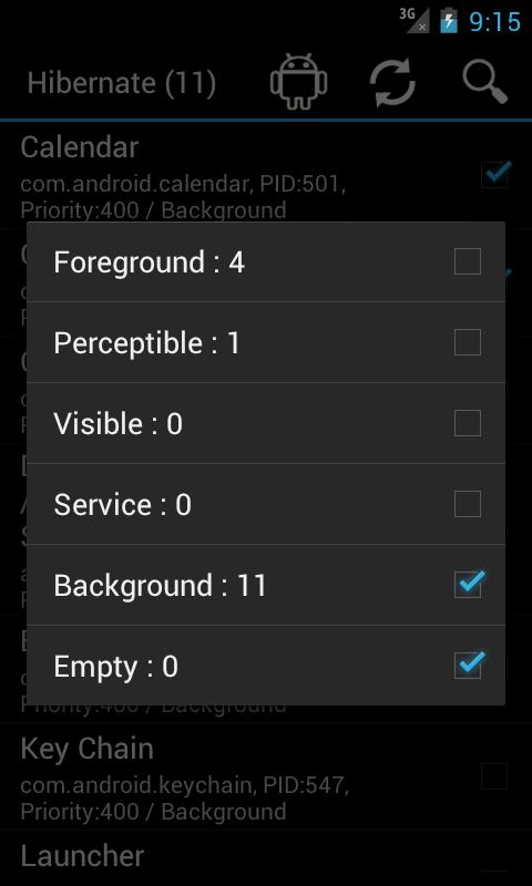 Hibernate is een klein hulpprogramma waarmee u geselecteerde achtergrondprocessen overwinteren. Het "doodt" hen door middel van "killBackgroundProcesses" intern gebruikt door Android om middelen vrij te maken. Deze methode verschilt van het doden van toepassingen in het systeem lijst van de lopende processen in de weg, dat het mogelijk maakt toepassingen om hun status op te slaan vóór de uitslag, dus als je terug te keren naar de winterslaap proces, het zal worden hersteld in de vorige staat.