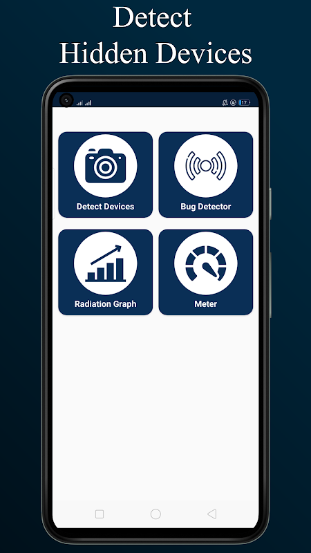 Hidden Devices Detector is een app voor het vinden van geheime apparaten. Via deze bugdetector-scanner-app kunnen gebruikers gemakkelijk verborgen apparaten vinden en zichzelf redden van schadelijke effecten van straling. app voor verborgen apparaatdetector en luchttag-detector gebruikt een magnetische sensor om de stralingsintensiteit te vinden die wordt uitgezonden door de elektronische apparaten om je heen.