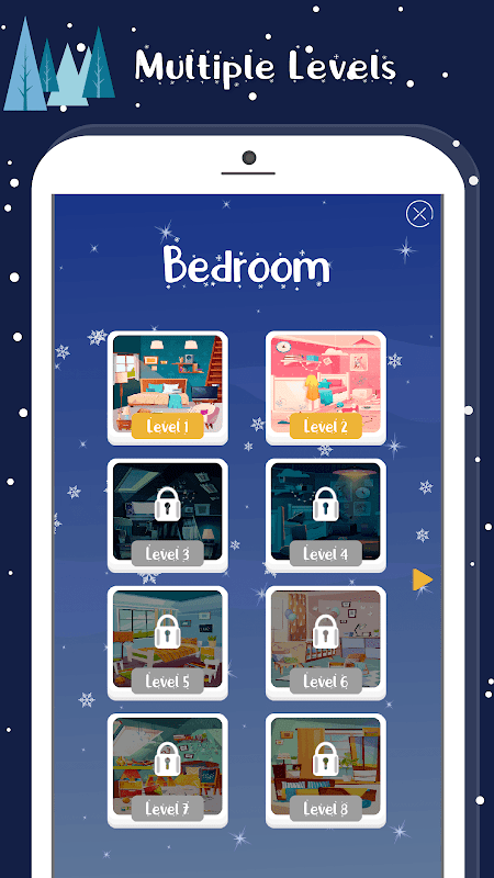 - Veel puzzels, niveaus, categorie omvat: slaapkamer, woonkamer, badkamer, keuken.