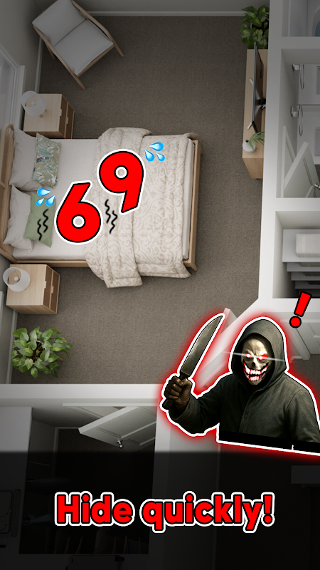 Welkom bij Snel verbergen! Dit is het ultieme verstop- en overlevingsspel! Kies snel waar je je wilt verstoppen. Blijf uit het zicht. Overleven gaat helemaal over hoe snel je je verstopt! Elke seconde is belangrijk. De moordenaar komt eraan. Kun jij overleven? 🏡