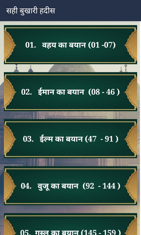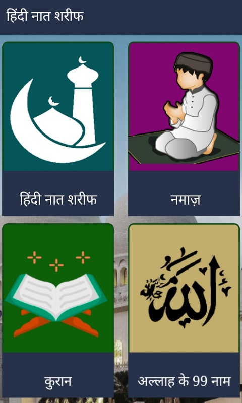 De Hindi Naat Sharif-app bestaat uit het volgende:
