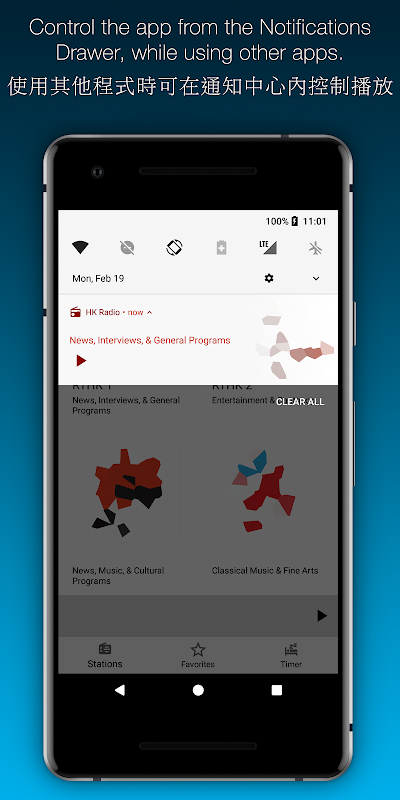 收聽 香港 各 電台 的 音樂 、 新聞 及 文化 節目。
