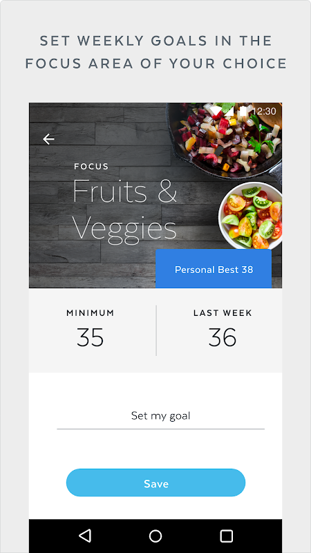 • Gedetailleerde gegevensvisualisatie: leer hoe u een betere zelfmanager kunt worden door het dagelijks duidelijk maken van de belangrijkste gezondheidsgedragingen ten opzichte van de programmminiminima. Als uw getallen in een gedrag meer dagen onder vallen dan bij of boven de minimale groengrens van het programma, is uw volgende stap duidelijk: ga elke dag voor de groene lijn (door hogere aantallen van dat gedrag te doen) om het succes te verbeteren.